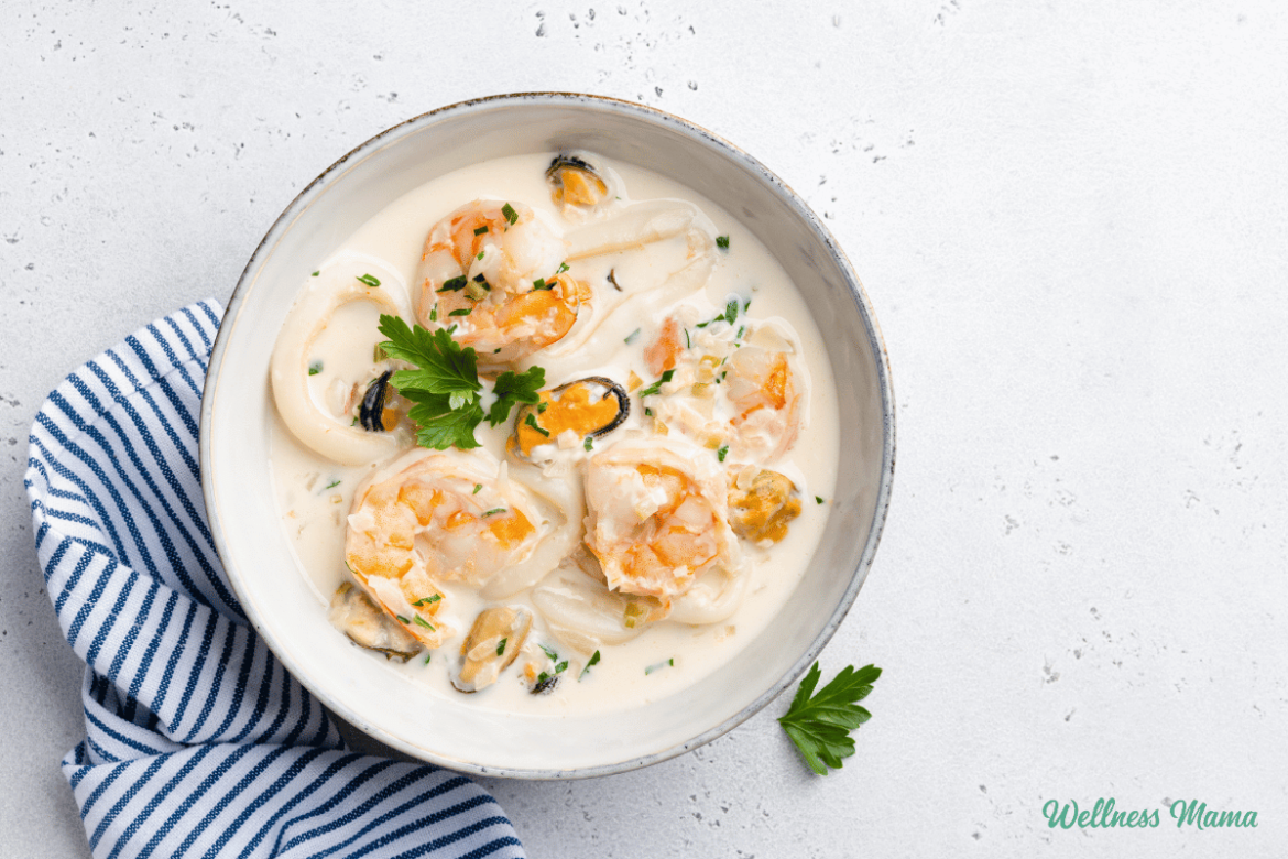 You can also make something like this hearty seafood chowder. I’d use arrowroot powder instead of the all-purpose flour though.