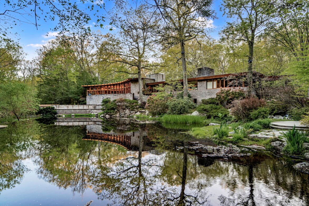 A 1950s Connecticut home designed by Frank Lloyd Wright has sold for $6 million. Known as “Tirranna,” an Australian Aboriginal word meaning “running waters,” the home at 432 Frogtown Road in New Canaan measures over 7,000 square feet and sits on 14 acres, making it one of the largest private residences ever completed by the famous architect. The horseshoe-shaped home, which cantilevers over a pond and waterfall, has had only four owners in the last 70 years, according to Mansion Global. The property was listed in May by Coldwell Banker Realty’s Marsha Charles and Albert Safdie for $8 million and closed last week.