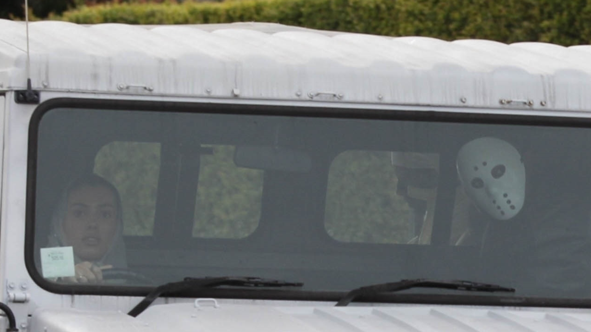Bianca — clad in a clear raincoat and white bodysuit — drove a truck with Playboi Carti and Luka Sabbat hanging out in the back. PBC’s in a pretty wild outfit too … black face paint and a white hooded-outfit on.