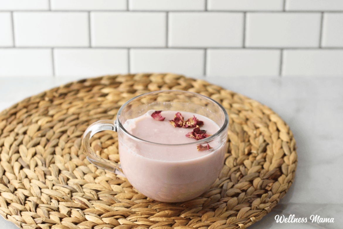 The acid in the cherry juice will cause raw milk and certain brands of store-bought plant milk to separate. To test if your milk will separate, add a little cherry juice and milk to a cup before combining all of your moon milk ingredients together. If it does curdle and separate, then omit the cherry juice, increase the rose petals to 1 TBSP, and decrease the honey to 1 TBSP or sweeten to taste.