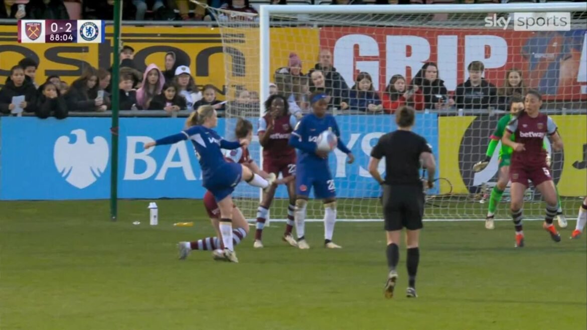 Chelsea midfielder Erin Cuthbert scores a cracker to double the visitors’ lead.