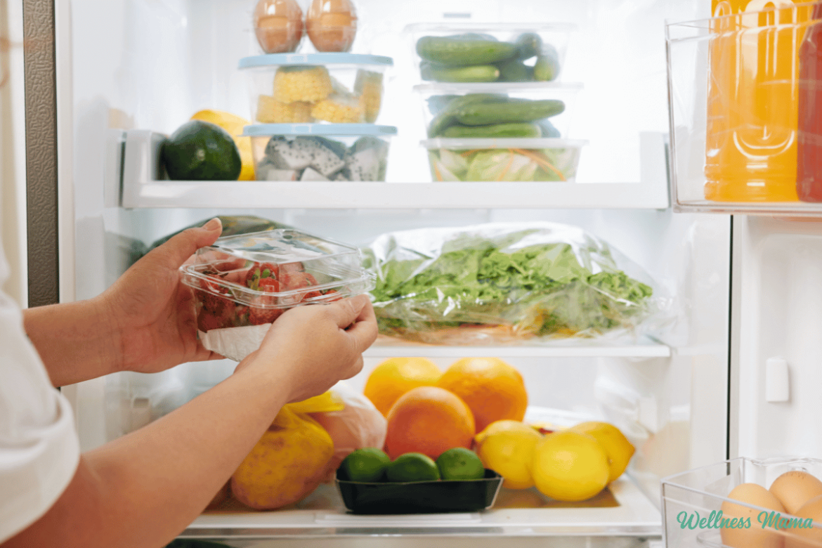 For quick snacks the kids can grab, I keep sliced cucumbers, carrots, and celery in the fridge. I also keep lettuce and spinach for salads and cabbage to make sauerkraut (which is usually in some stage of fermentation on my counter). To add some variety, I also buy a wide range of healthy veggies for side dishes and recipes. I also keep some frozen veggies from last year’s garden in our freezer.