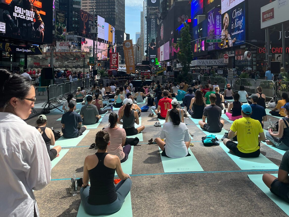 NEW YORK (RNS) — On Thursday, June 20, hundreds of New Yorkers gathered to practice yoga in Times Square — a bustling hub known for anything but the mindfulness and calming silence characteristic of yoga — for a combined observance of summer solstice and the International Day of Yoga.