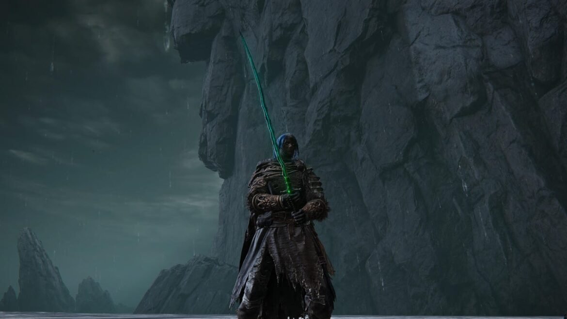 You can find the Star-Lined Sword by defeating Demi-Human Queen Marigga in the Charo’s Hidden Grave region. To reach her, fast travel to the Cerulean Coast West Site of Grace, then head northeast around the nearby structure and through the ravine ahead. Follow the ravine while sticking to the left side, then head straight out onto the coast.