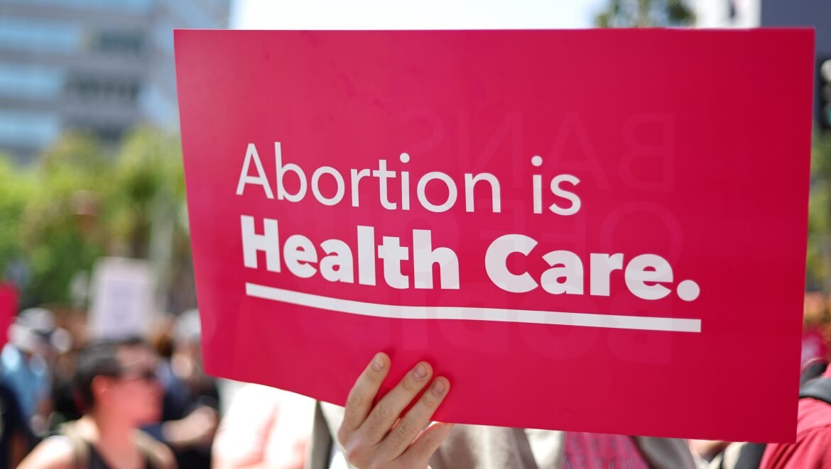 LOS ANGELES, CALIFORNIA - APRIL 15: Protestors demonstrate at the March for Reproductive Rights organized by Women’s March L.A. on April 15, 2023 in Los Angeles, California. The march was organized in response to a Texas federal judge’s ruling to rescind FDA approval of the abortion pill Mifepristone. U.S. Vice President Kamala Harris made a surprise appearance and speech at the event. (Photo by Mario Tama/Getty Images)