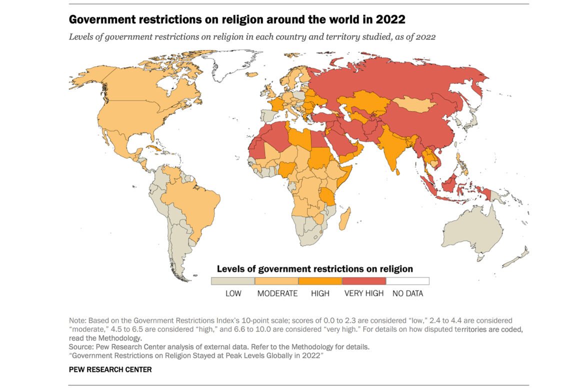 The study looks at the situation in 198 countries in 2022, the latest year for which data are available from such agencies as the U.S. Commission on International Religious Freedom, the U.S. Department of State and the FBI. The report also contains findings from independent and nongovernmental organizations, including the American Civil Liberties Union, the Anti-Defamation League, Human Rights Watch and Amnesty International.