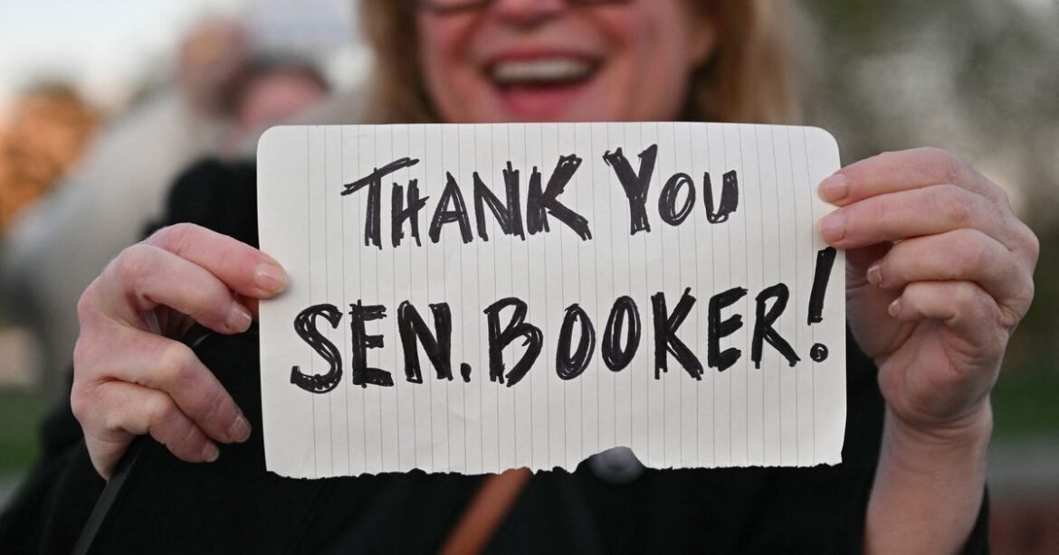 Booker didn’t concentrate on Trump’s potential Medicaid cuts, illegal deportations, cruelty to public employees, abandonment of Ukraine, violations of civil liberties, reckless tariffs, usurpations of legislative powers, rampant corruption, or thuggish threats to federal judges. He talked about all this and more as a way to dramatize the ongoing assault on both democracy and the well-being of poor and middle-class Americans.