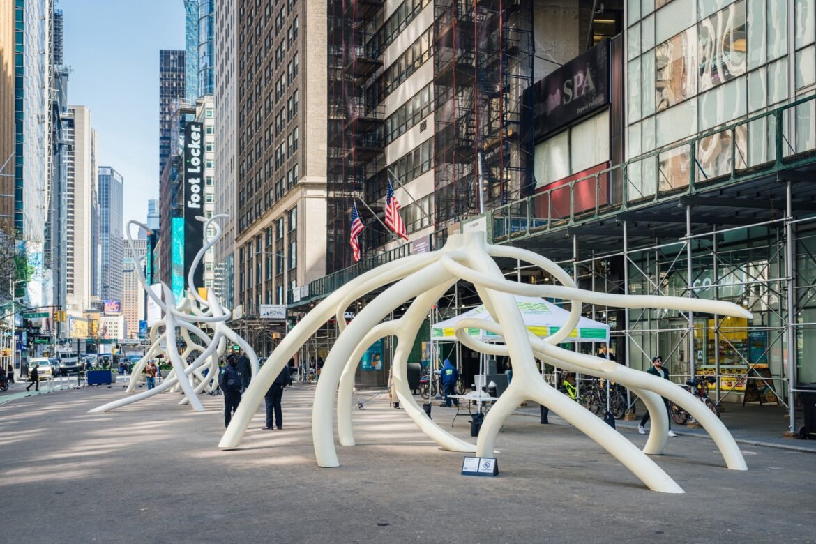 “‘New York Roots’ is a captivating addition to the Garment District that transforms our public plazas into spaces for reflection and serves as an important reminder to stay rooted in our communities,” Barbara A. Blair, president of the Garment District Alliance, said.
