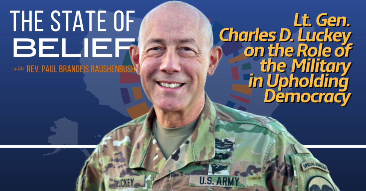 This week on the show, we’re honored to welcome Lt. Gen. Charles D. Luckey (Retired), former Chief of the United States Army Reserve, joining host Rev. Paul Brandeis Raushenbush. He’s a combat veteran, he’s an attorney, and he’s a pastor’s son – so he’s able to cover a wide range of topics with depth and wisdom. Having sworn an oath to the Constitution, Lt. Gen. Luckey has some really great insights into the responsibilities of citizenship, the urgent need to preserve democracy, and the important role for religion in this moment of American – and human – history.