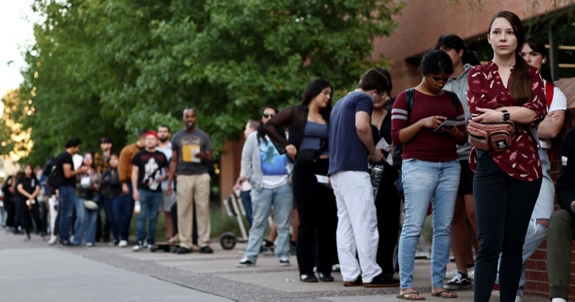 Voters stand in line to participate in the 2024 election.