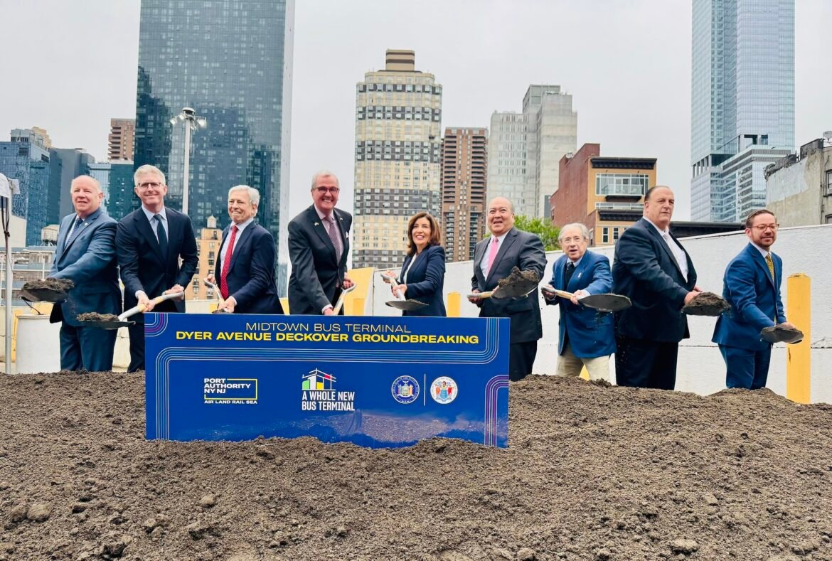 Construction began on the first phase of the new $10 billion Port Authority Bus Terminal on Thursday, marking an important milestone for the long-awaited project. Gov. Kathy Hochul and Gov. Phil Murphy joined the Port Authority in a groundbreaking ceremony for the Dyer Avenue deck-overs, which will be used for staging buses during construction and will eventually become a public green space when the new terminal opens. The first phase deck-overs, along with new ramps and a bus storage facility, are expected to be completed by 2028, with the full terminal opening in 2032.