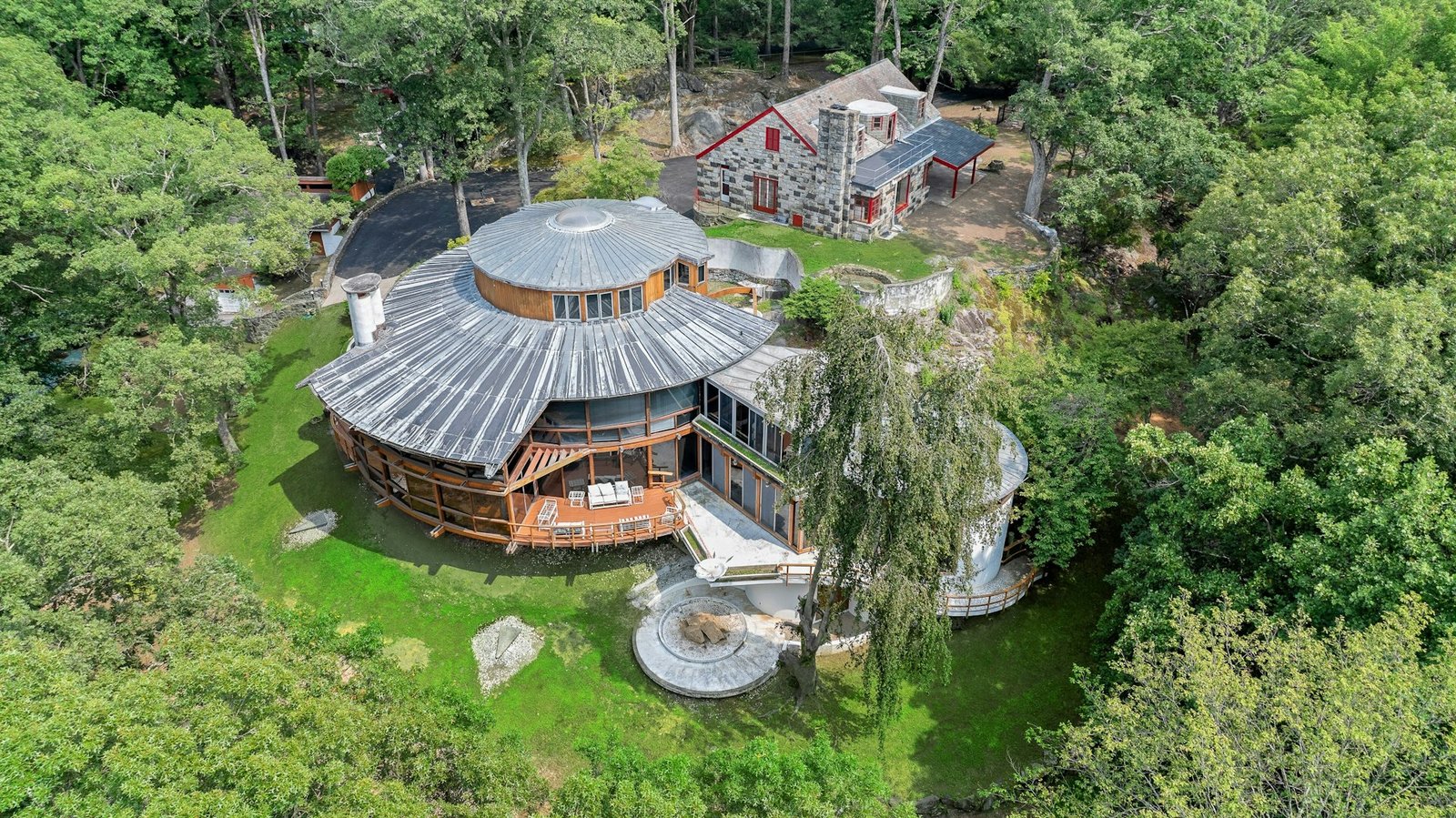“Honeymooners” star and comedy icon Jackie Gleason’s unique UFO house in Westchester is back on the market. The sitcom legend had an infatuation with all things outer space and designed the Cortlandt Manor home to resemble a flying saucer. Situated on nearly nine acres about an hour north of New York City, the custom-built property, now asking $5,500,000, consists of three buildings: the main “mothership” home, a spaceship-like cottage, and a 1930s stone colonial.