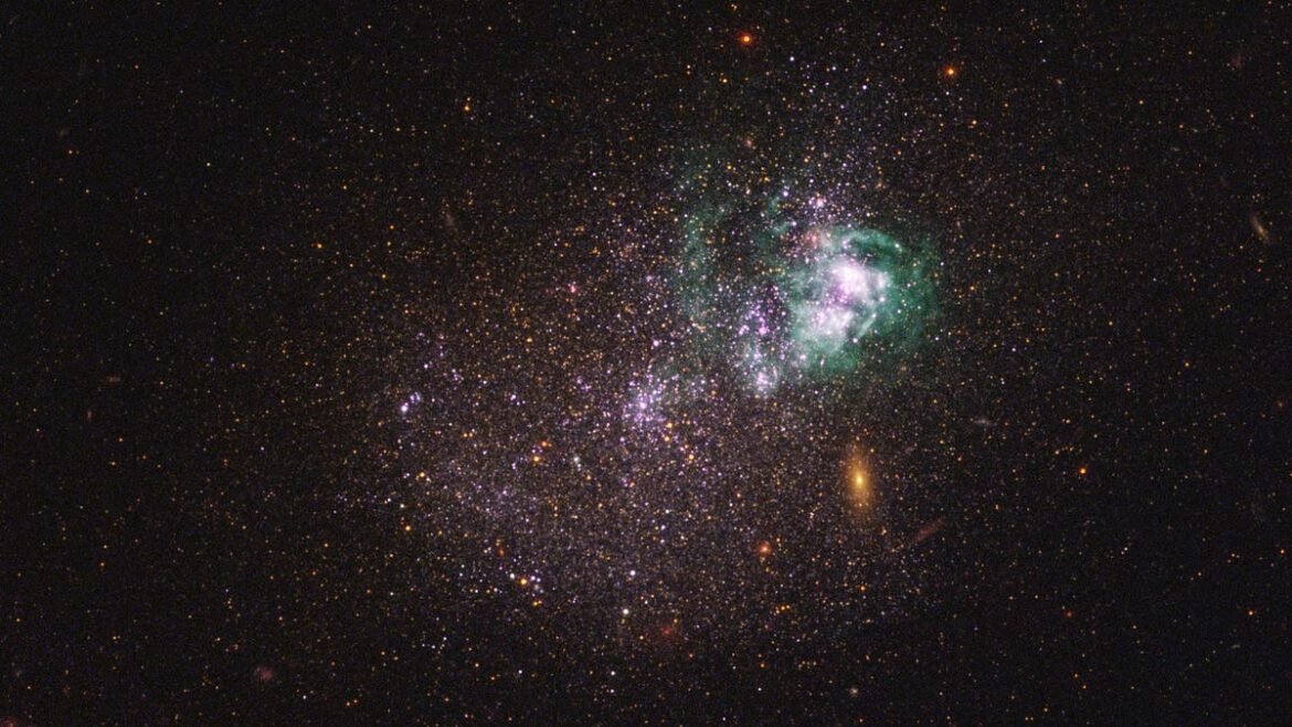 The dwarf galaxy UGCA 281, shown here as imaged by Hubble in the visible and ultraviolet, is rapidly forming new stars. An older, background population of redder stars coexists alongside the newer, bluer stars that are superimposed atop them. The newly-formed stars are largely heavily-enriched Population I stars, while the older stars are largely metal-poor Population II stars. No pristine, metal-free, Population III stars are yet known. (Credit: NASA, ESA, LEGUS Team)