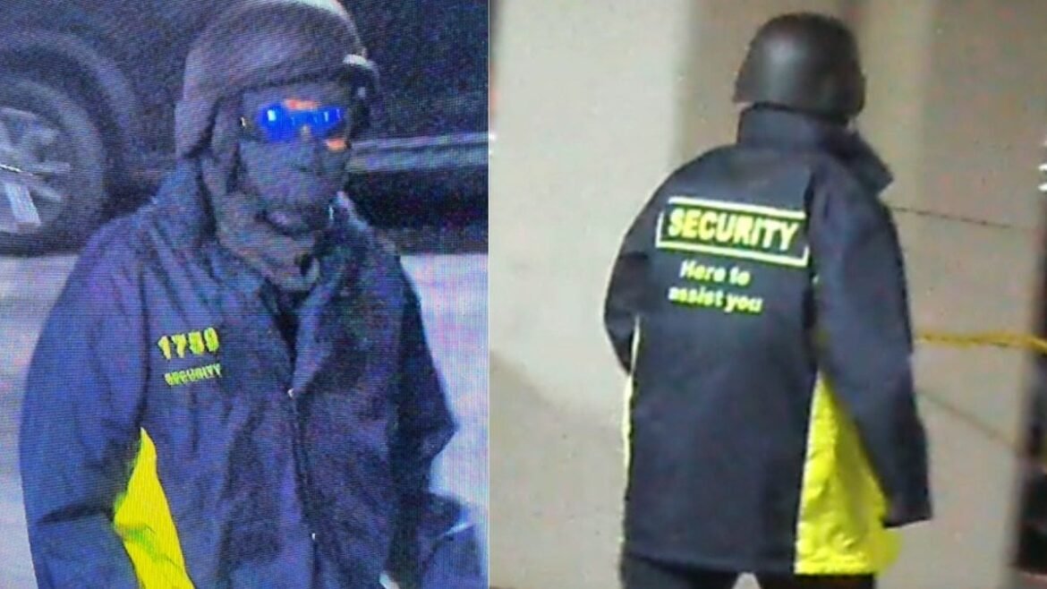Police shared photos of the robber on Saturday, November 15. In addition to the blue and yellow security jacket, he wore a ballistic helmet, blue sunglasses and a blue mask concealing his face.