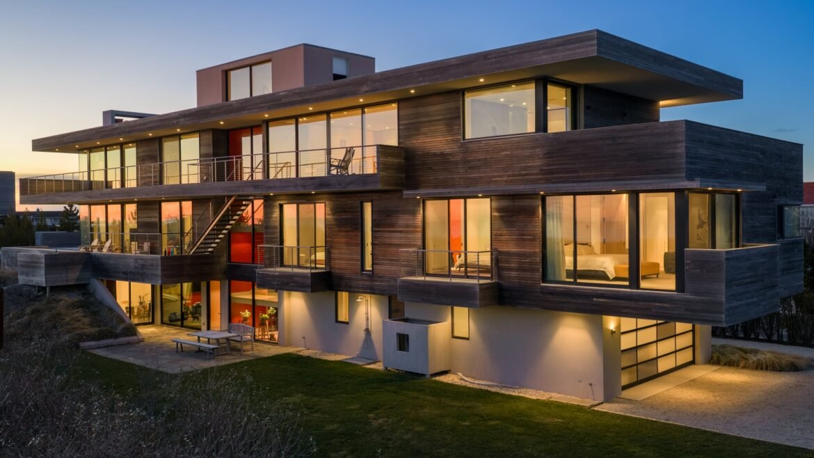 The home features a three-story glass elevator overlooking the dunes and out to the ocean. It is turnkey-ready, allowing a prospective buyer to move in just in time for the summer season.